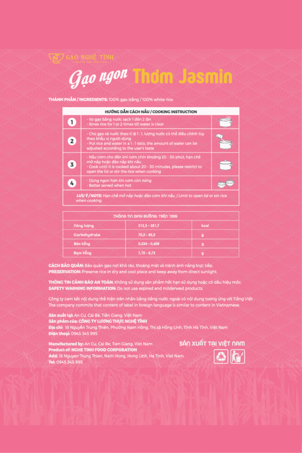 Gạo Jasmine được trồng chủ yếu ở miền Nam Việt Nam, Thái Lan, Campuchia và Lào. Đây là loại gạo có tính ẩm nên mềm khi được nấu chín và có vị hơi ngọt. Các hạt cơm gạo thơm bám và hơi dính khi nấu, mặc dù vậy nó ít dính hơn gạo nếp (Oryza sativa var. Glutinosa) vì nó có ít amylopectin. Gạo thơm có độ dẻo gấp khoảng ba lần so với gạo hạt dài của Mỹ.